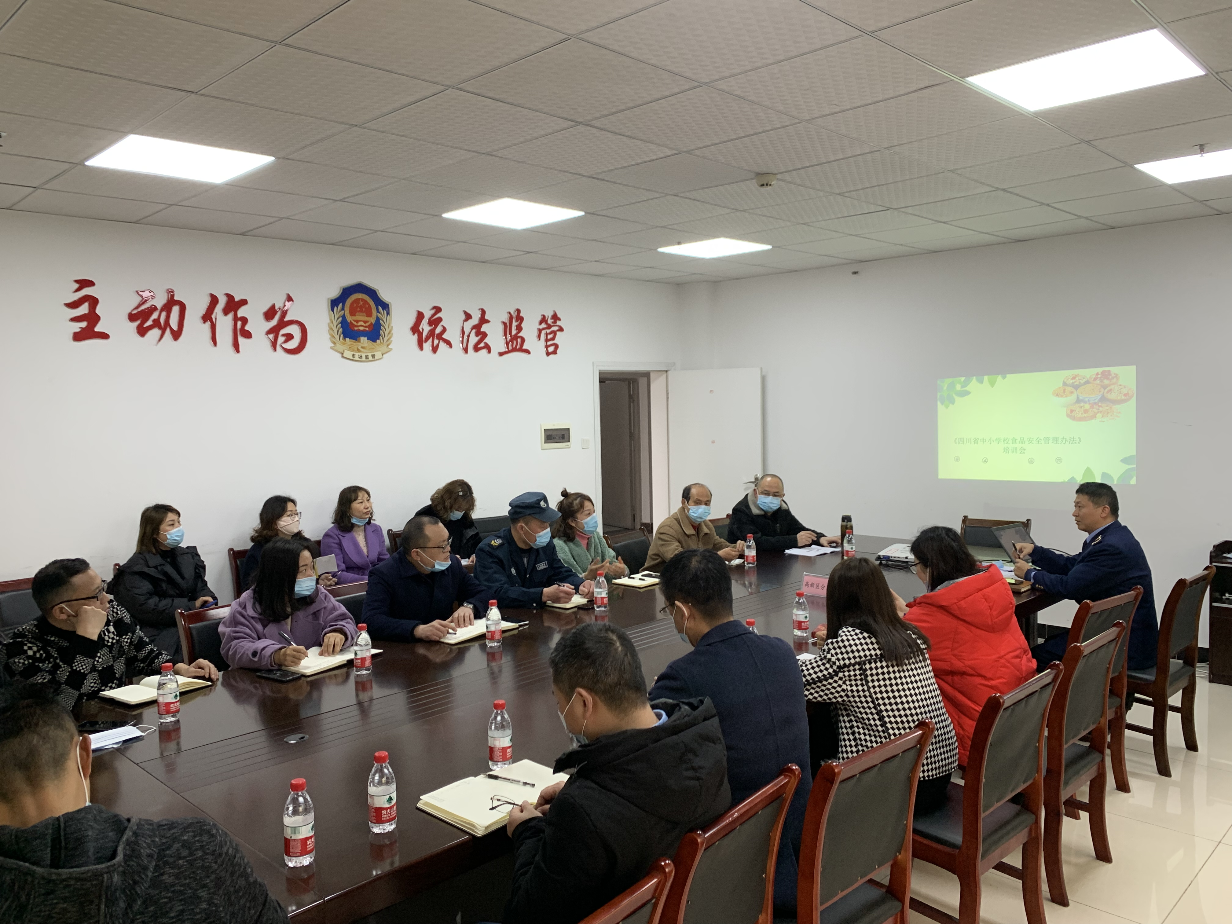 考核前,分局副局长冯俊组织参会人员学习了《中华人民共和国食品安全法》、《四川省中小学校食品安全管理办法》,认真分析监管中常见的学校食品安全管理和食品安全操作规范问题,并指导学校提升食品安全管理能力。