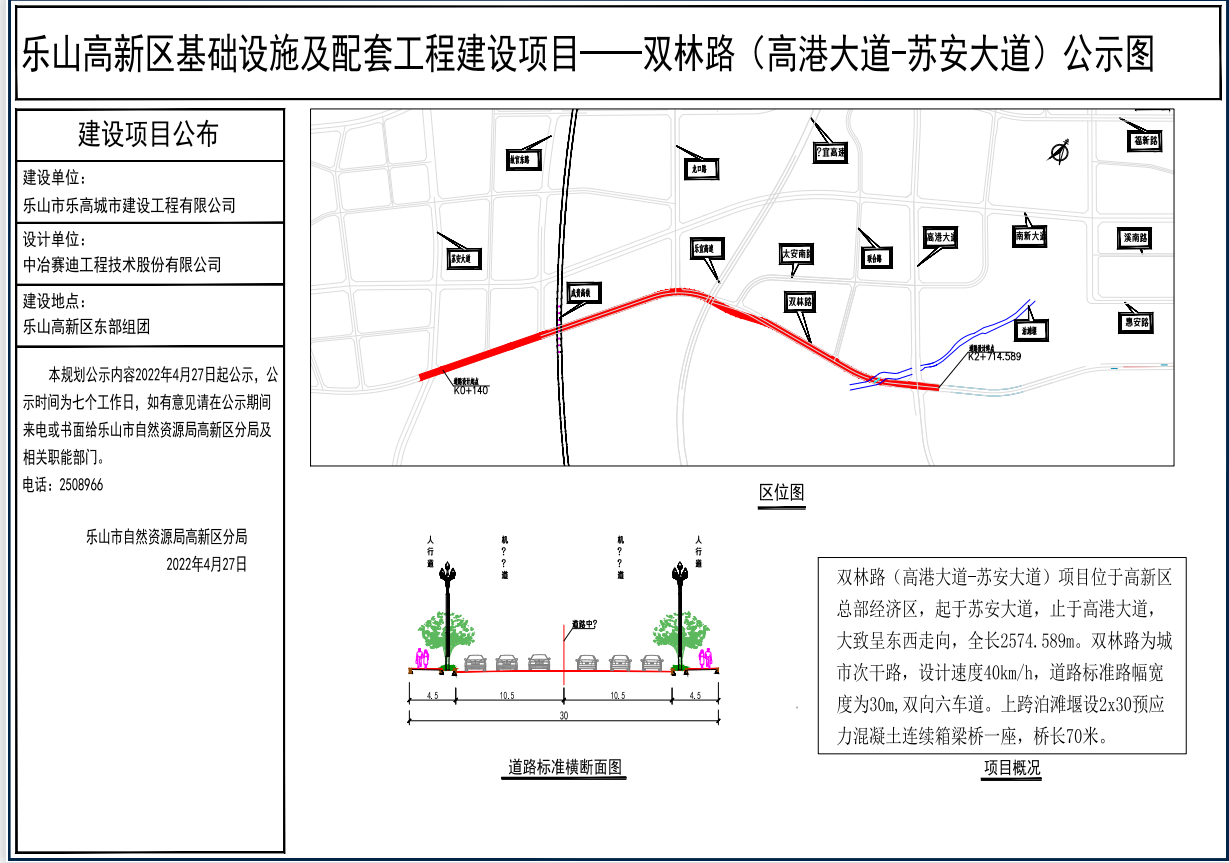 乐山高新区基础设施及配套工程建设项目——双林路(高港大道-苏安大道)规划方案公示图