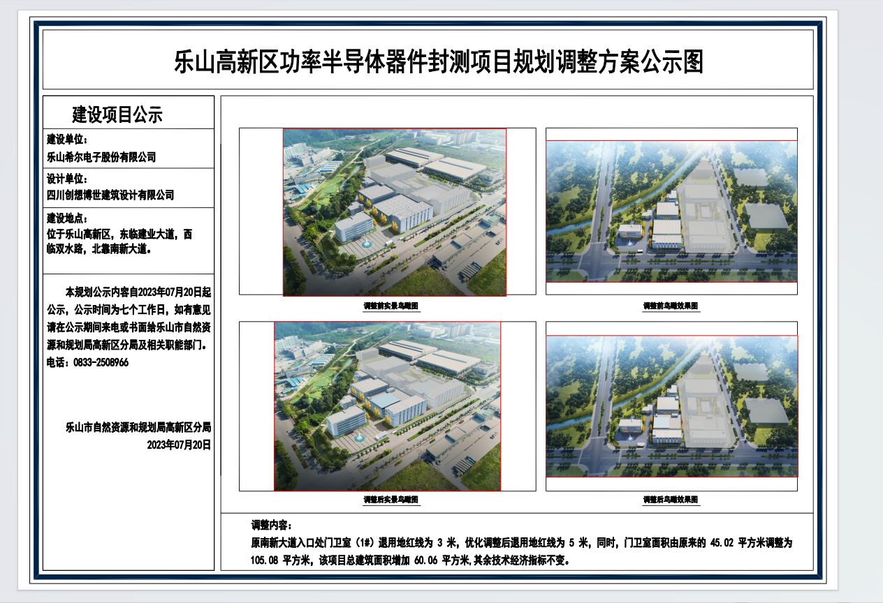乐山高新区功率半导体器件封测项目规划调整方案公示图