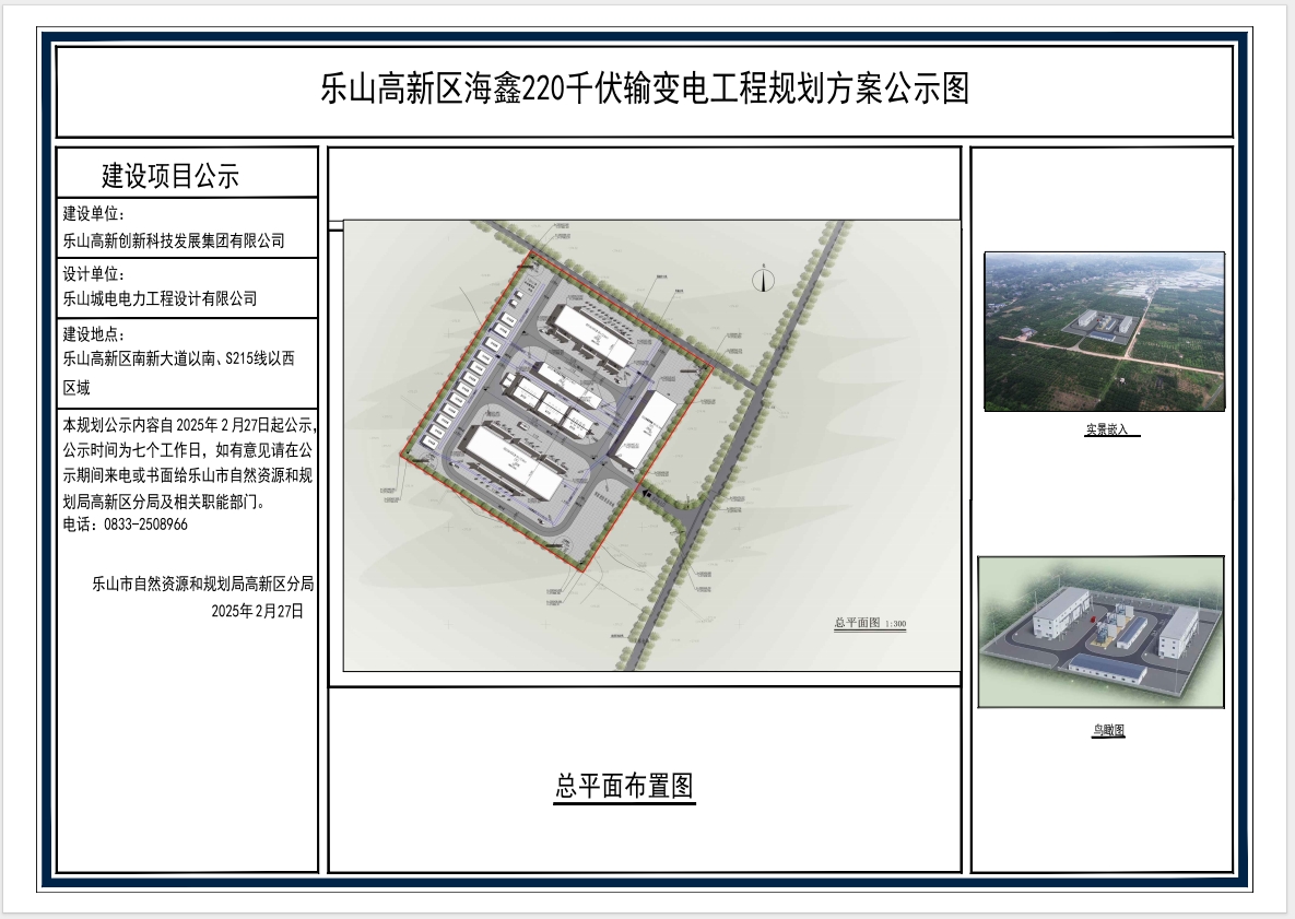 乐山高新区海鑫220千伏输变电工程规划方案公示图