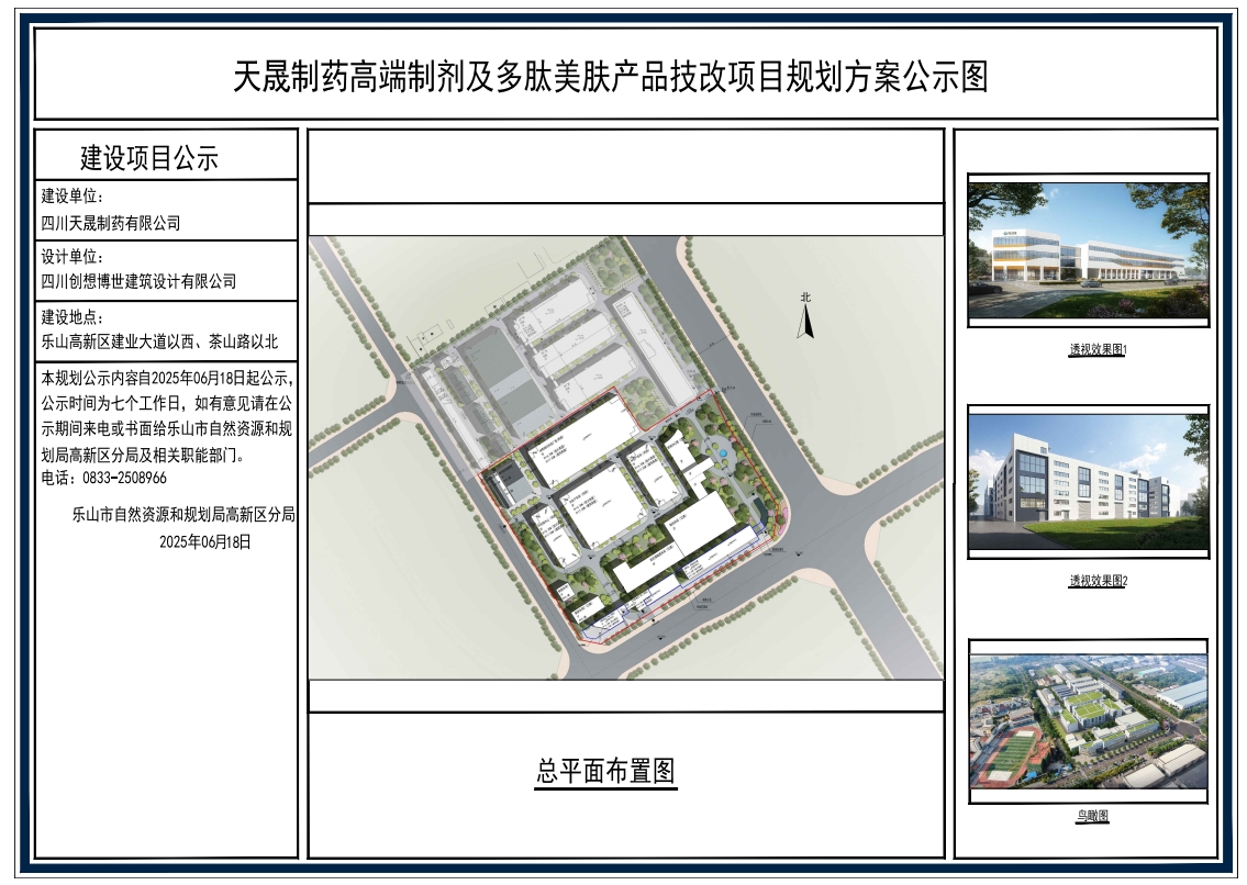天晟制药高端制剂及多肽美肤产品技改项目规划方案公示图