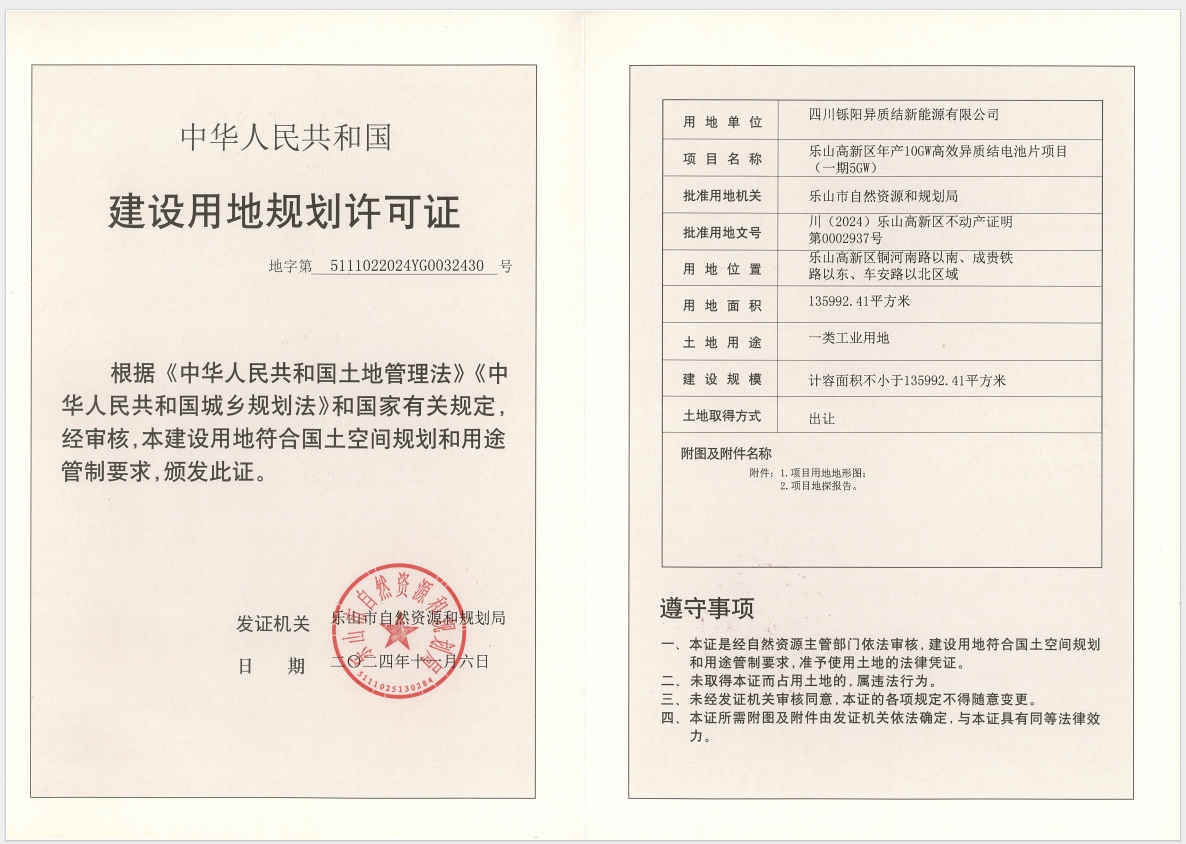 建设用地规划许可证(异质结、国网小型基建项目)、建设工程规划许可证(异质结)公示图