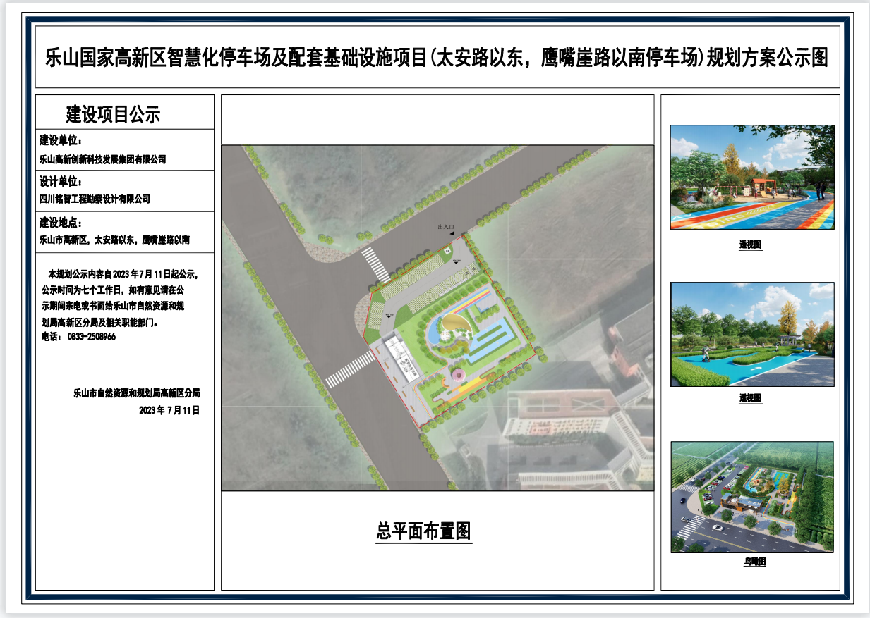 乐山国家高新区智慧化停车场及配套基础设施项目( 太安路以东,鹰嘴崖路以南停车场 )公示图