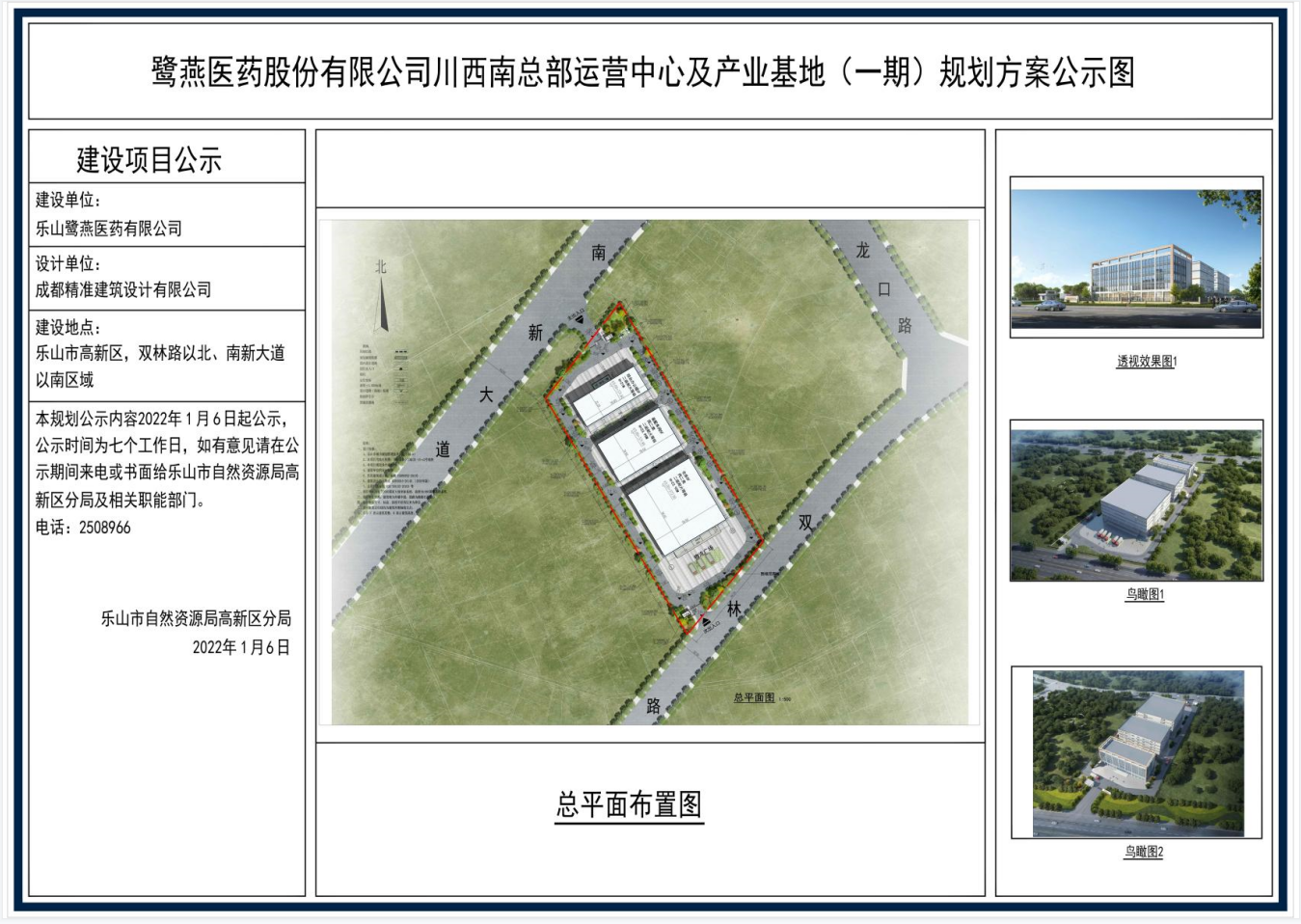 鹭燕医药股份有限公司川西南总部运营中心及产业基地(一期)规划方案公示图