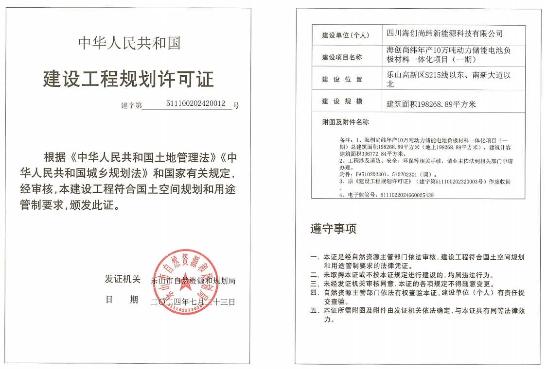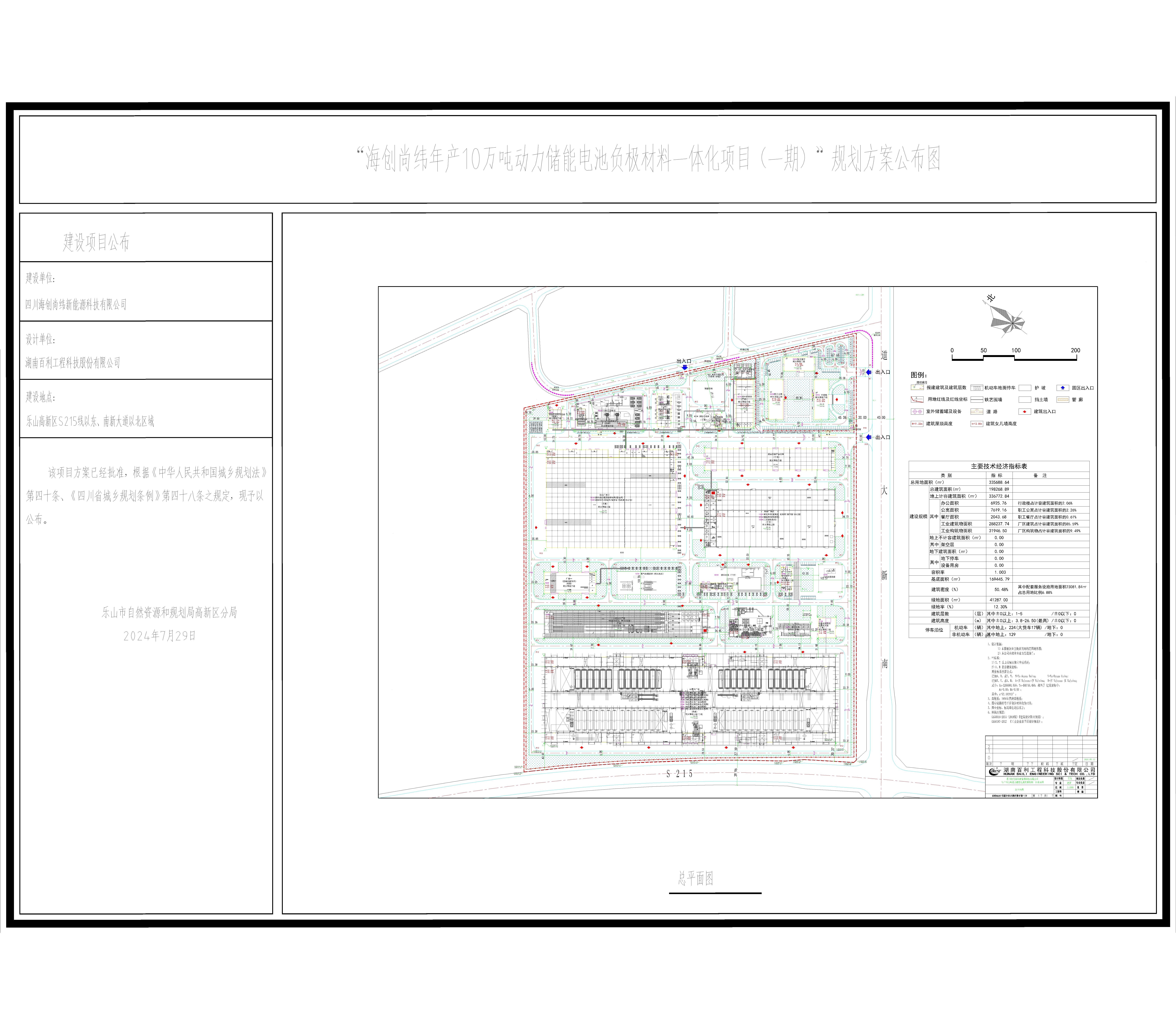 海创尚纬年产10万吨动力储能电池负极材料一体化项目(一期)规划方案公布图、建设工程规划许可证