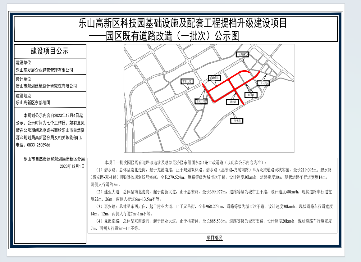 乐山高新区科技园基础设施及配套工程提档升级建设项目—园区既有道路改造(一批次)公示图.pdf