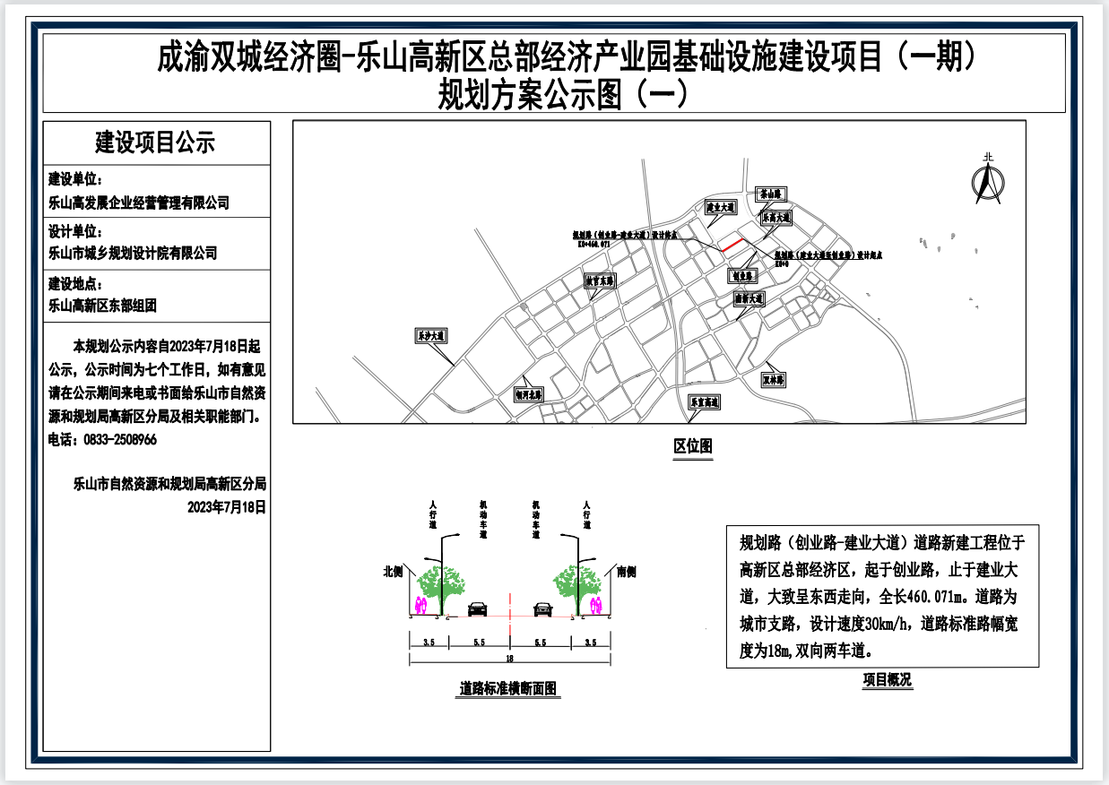 成渝双城经济圈-乐山高新区总部经济产业园基础设施建设项目(一期)规划方案公示图(一)、(二)