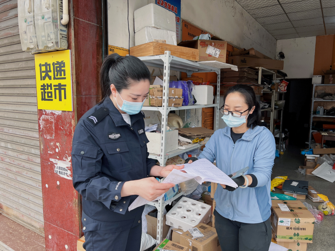 检查中,民警重点对寄递物流场所证照是否齐全,是否严格落实实名登记、开箱验视等相关规定,包裹邮件是否登记台账、视频监控是否清晰、视频资料保存时间是否达标等情况进行检查。并告知单位负责人和从业人员要从源头上杜绝各类禁寄物品、违禁物品;要严格执行实名登记制度和验视制度,严禁各类禁寄物品、违禁物品、危险物品的传播和运输;要严防犯罪分子利用快递公司进行违法犯罪活动,一旦发现寄递枪支弹药、管制刀具和危险化学品等禁寄物品,应及时向公安机关报告,以便第一时间消除安全隐患。