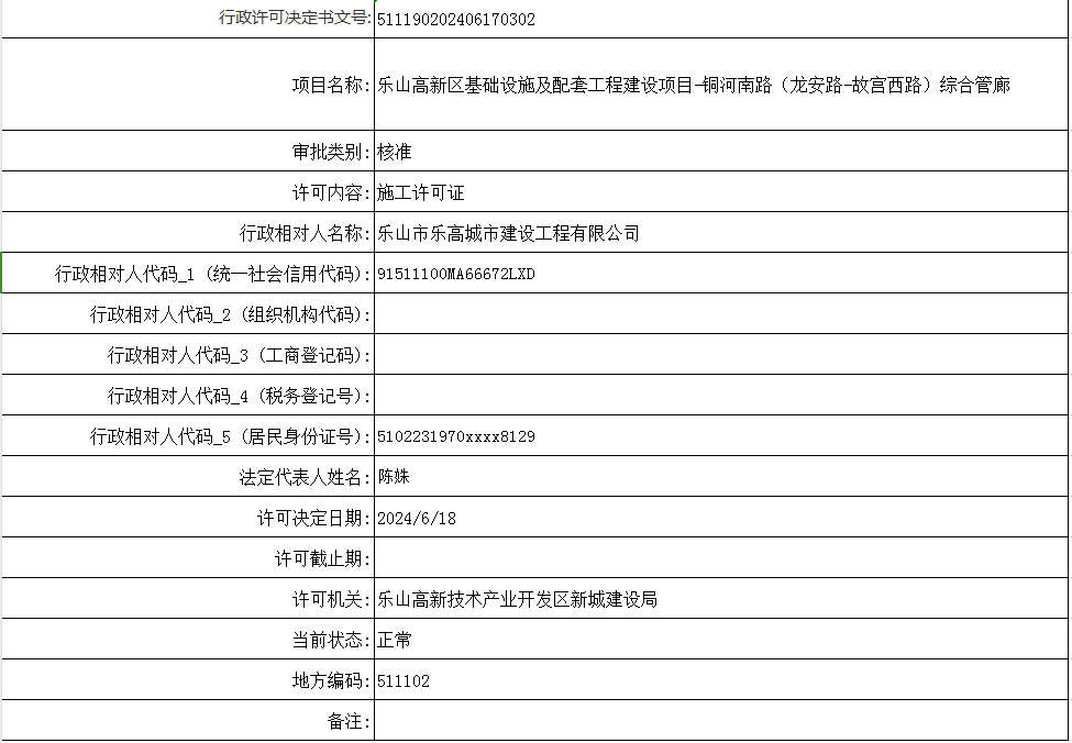 乐山高新区基础设施及配套工程建设项目-铜河南路(龙安路-故宫西路)综合管廊