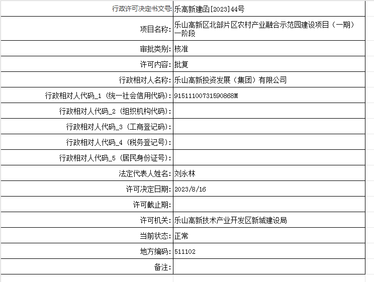 乐山高新区北部片区农村产业融合示范园建设项目(一期)一阶段