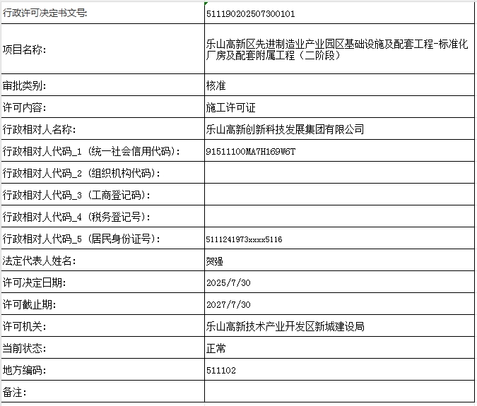 乐山高新区先进制造业产业园区基础设施及配套工程—标准化厂房及配套附属工程(二阶段)