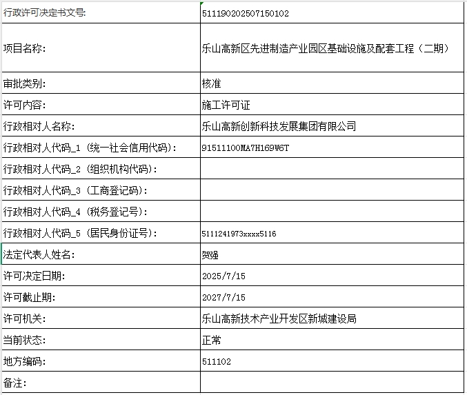 乐山高新区先进制造产业园区基础设施及配套工程(二期))