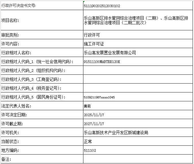 乐山高新区排水管网综合治理项目(二期)、乐山高新区排水管网综合治理项目(二期二批次)