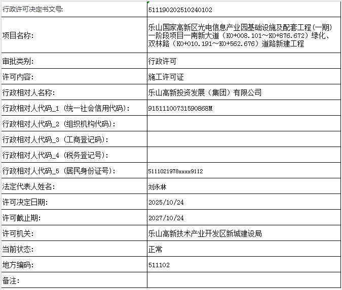 乐山国家高新区光电信息产业园基础设施及配套工程(一期)一阶段项目一南新大道(K0+008.101~K0+876.672)绿化、双林路(K0+010.191~K0+562.676)道路新建工程