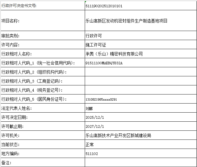 乐山高新区发动机密封组件生产制造基地项目