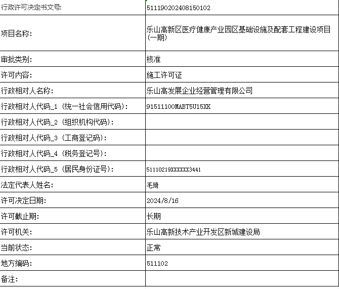 乐山高新区医疗健康产业园区基础设施及配套工程建设项目(一期)