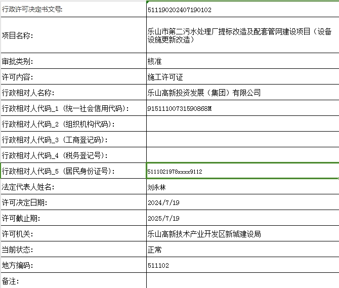 乐山市第二污水处理厂提标改造及配套管网建设项目(设备设施更新改造))