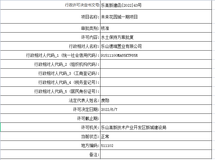 乐山高新区新城建设局关于未来花园城一期水土保持项目许可证