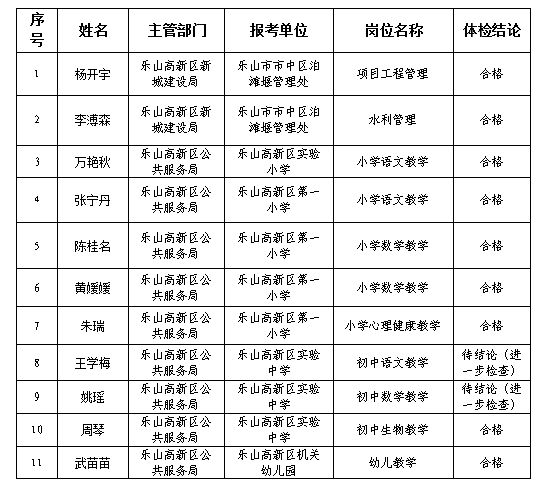 关于2024年乐山高新区事业单位公开考试 招聘工作人员体检结果的公告