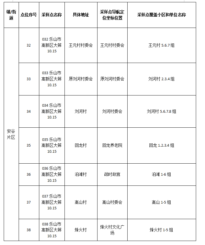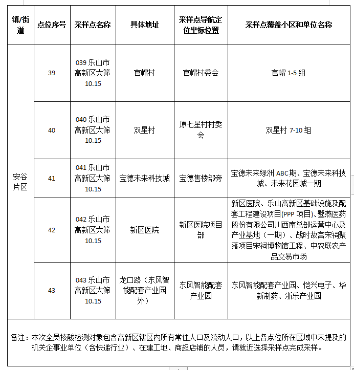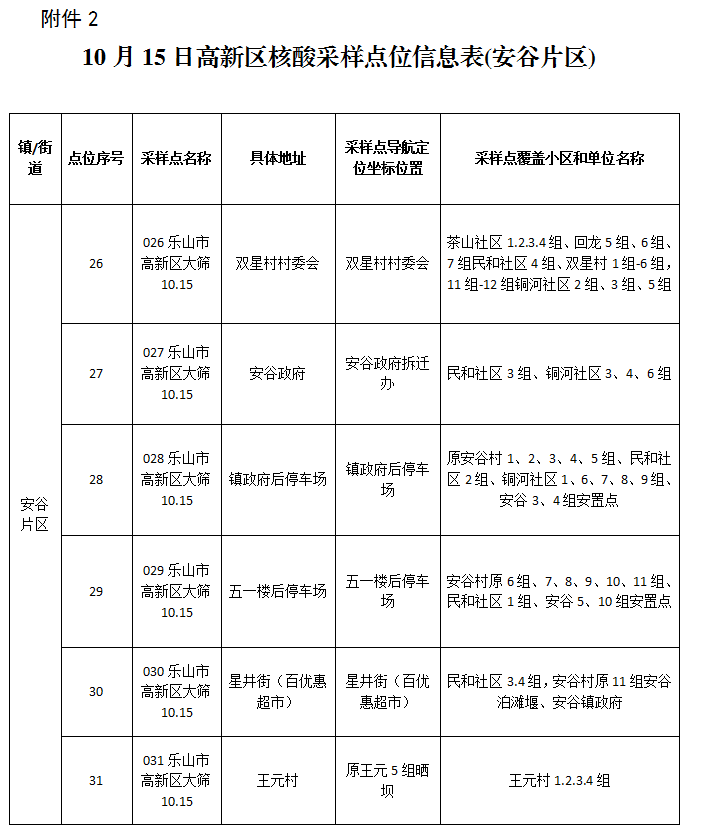 2.高新区10月15日核酸采样点位信息表(安谷片区)