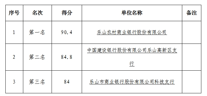乐山高新区人力资源服务中心关于专项基金存放银行综合评分结果的公示