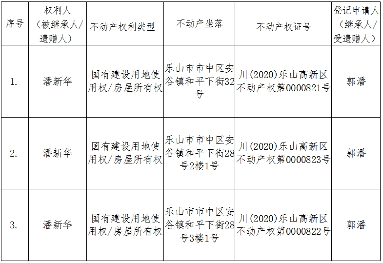异议书面材料送达地址:乐山高新区不动产登记中心(乐山高新区乐高大道6号)