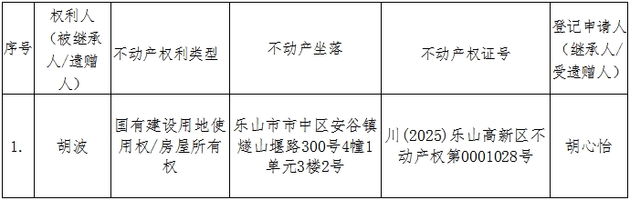 异议书面材料送达地址:乐山高新区不动产登记中心(乐山高新区乐高大道6号)