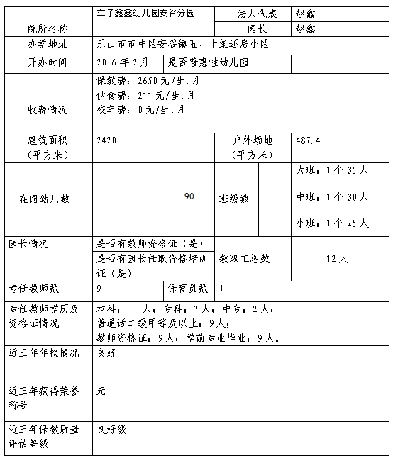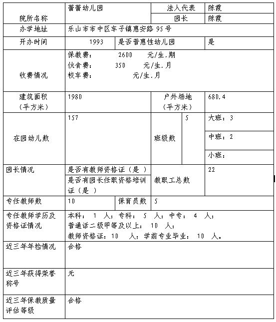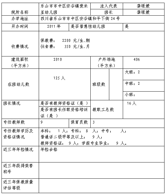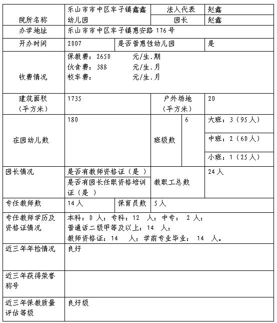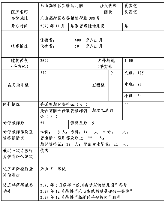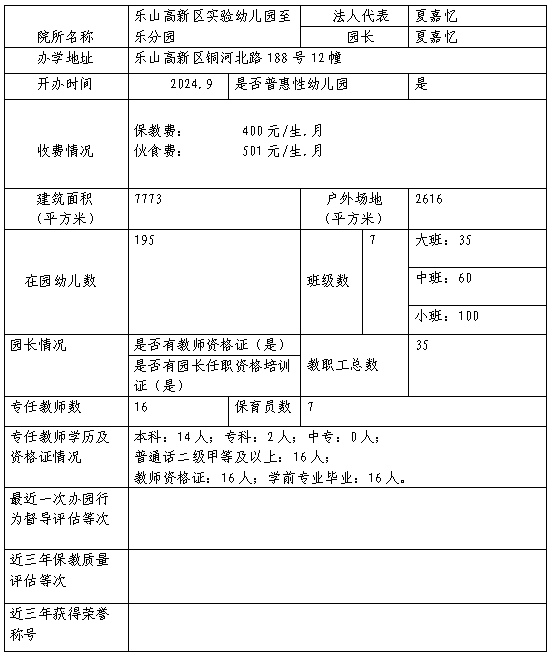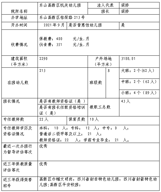 乐山高新区幼儿园基本信息备案公示