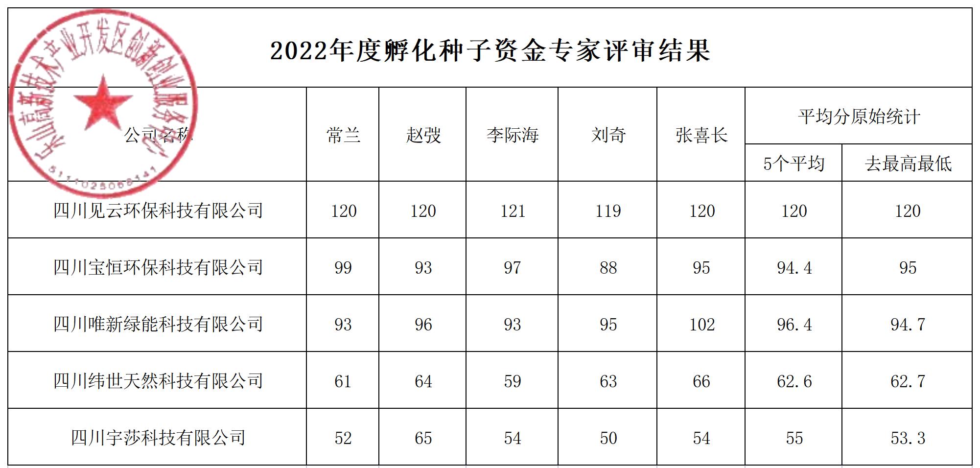依据《乐山高新区创新创业服务中心孵化企业创业启动资金管理办法(试行)》(乐高创服〔2022〕3号)的有关规定,经乐山高新区创新创业服务中心组织初选核查、评审专家打分,拟对四川见云环保科技有限公司等4家孵化企业给予创业孵化种子资金支持,现予公示,公示公告期5个工作日(10月31日-11月4日)。如对公示对象有异议,请于公示期内以真实姓名或当面向高新区创新创业服务中心反映、举报(电话:2596990)。