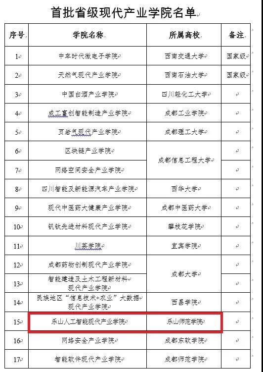重大喜讯!“乐山人工智能现代产业学院”,为省内首批省级现代产业学院