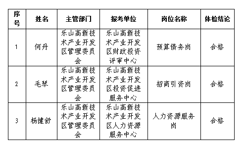 2023年乐山高新区管委会直属事业单位公开考核招聘工作人员体检结果的公告