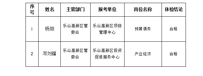 乐山高新区管委会直属事业单位2022年公开考核招聘工作人员体检结果的公告