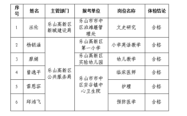 2023年乐山高新区事业单位公开考试招聘 工作人员体检结果的公告