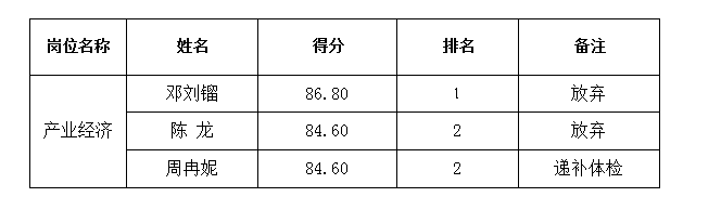 按照《乐山市人力资源和社会保障局2022年乐山市市属事业单位公开考核招聘工作人员的公告》要求,在考察环节,对报考者自动放弃出现的空缺,按该岗位考核总成绩从高分到低分依次等额递补,本环节每岗位递补次数为1次。因递补人员自愿放弃,现将递补公告如下: